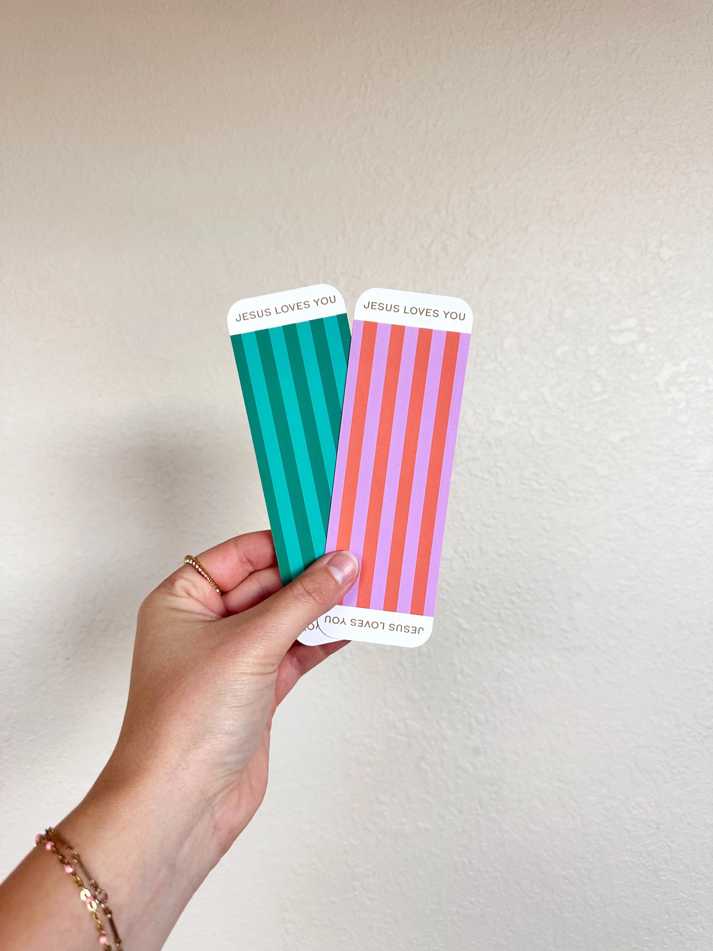 Each set includes two bookmarks printed front and back on premium soft-touch matte cardstock. Sized 2x6 inches, theyβre a fun and colorful way to mark your place in your Bible or current read!