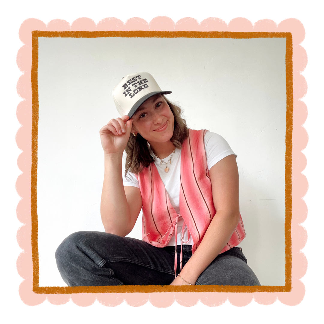 Our newest addition—two-tone embroidered trucker hats with “REST IN THE LORD”—are finally here!